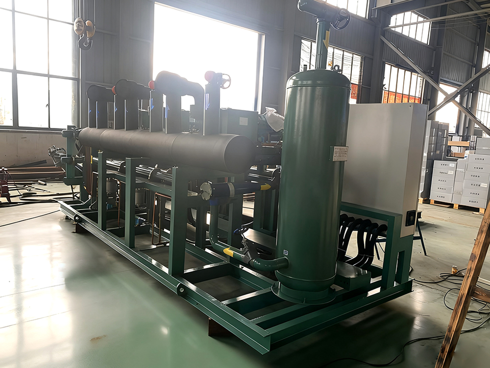 La unidad integra múltiples compresores de tornillo que funcionan en paralelo, cada uno capaz de arranque, parada y ajuste independientes, con control por niveles de capacidad. El sistema utiliza un controlador de nivel industrial para monitorear en tiempo real la presión, la temperatura y el estado operativo, y proporciona una interfaz de comunicación remota. Es adecuado para aplicaciones que requieren una fuente de refrigeración altamente fiable, como centros de datos y fabricación industrial.
