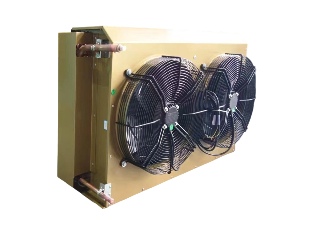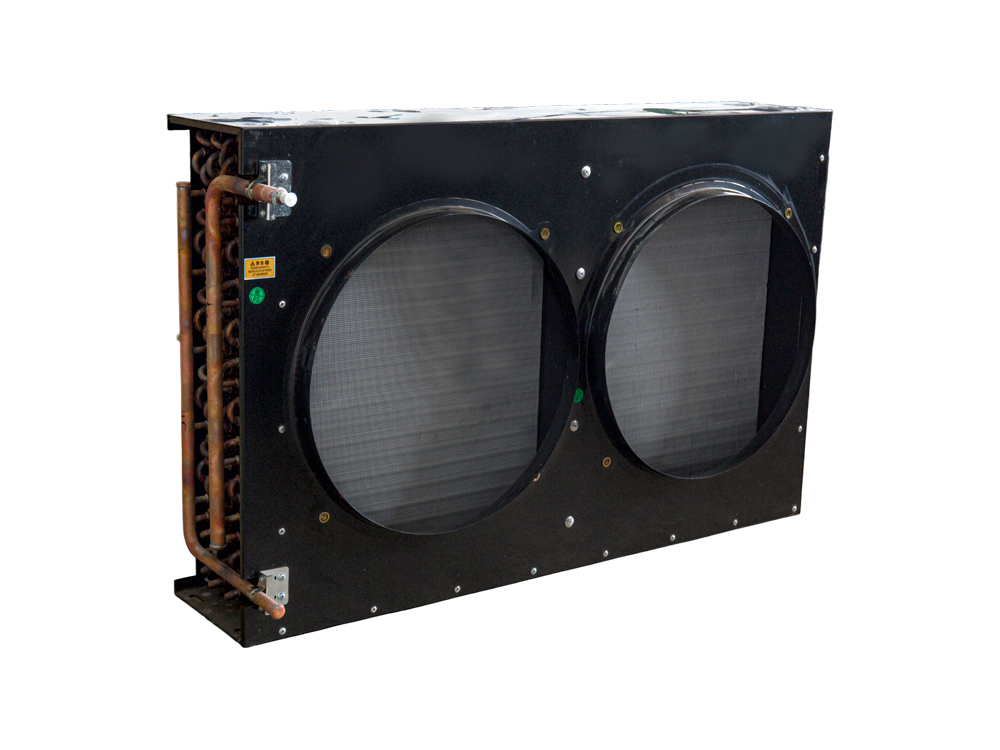 El condensador de doble placa en forma de H presenta una estructura de flujo paralelo, con múltiples conjuntos de tubos planos y colectores que forman la unidad de intercambio de calor. Las aletas reforzadas de doble cara mejoran el flujo de aire. Esta estructura aumenta el área efectiva de intercambio de calor por unidad de volumen, mejorando la eficiencia del intercambio de calor entre el medio y el aire. El equipo normalmente está construido con aleación de aluminio, equilibrando la conductividad térmica y la resistencia estructural. El sistema de ventilador utiliza un ventilador axial accionado por un motor de rotor externo, lo que logra un funcionamiento con bajo nivel de ruido y un alto volumen de salida de aire, lo que lo hace adecuado para condiciones de enfriamiento a temperatura media y alta. La estructura compacta general facilita la integración y el mantenimiento del sistema.