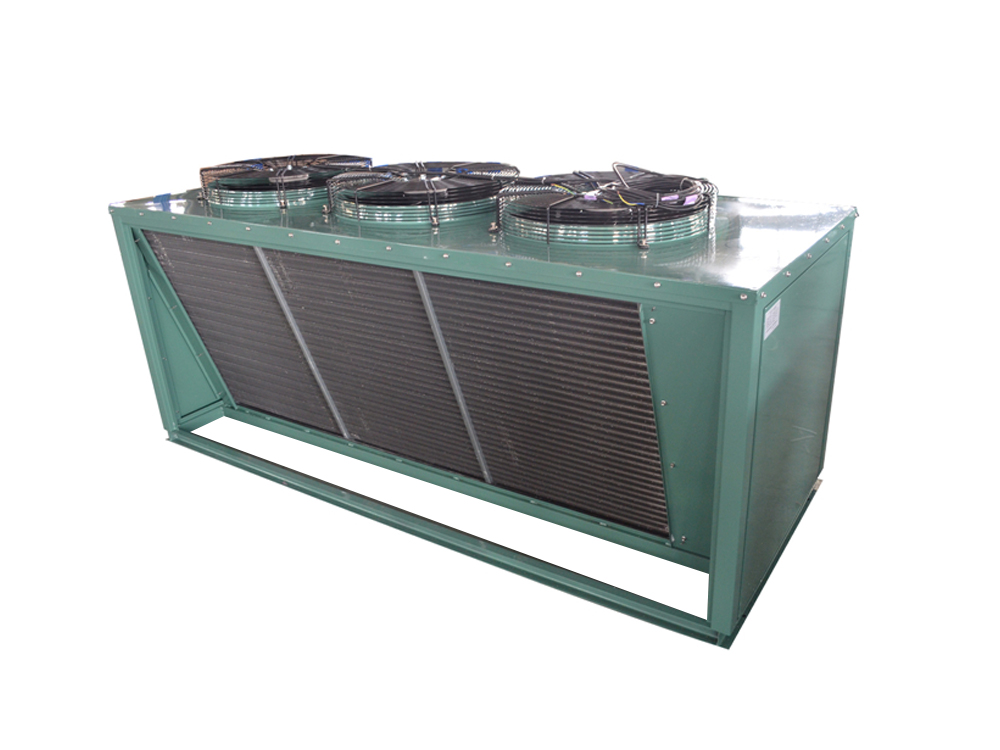 El condensador dividido de una sola capa FNV (tres motores) presenta un diseño dividido, con la unidad condensadora separada del sistema principal, lo que permite una instalación y un mantenimiento independientes. Equipado con tres motores independientes, cada uno de los cuales acciona múltiples ventiladores condensadores, ofrece funcionalidad de arranque/parada por etapas y velocidad ajustable para adaptarse a diferentes condiciones ambientales y cargas de calor. La carcasa suele estar construida de acero revestido resistente a la corrosión, mientras que el interior presenta una estructura de intercambio de calor de alta eficiencia con tubos de cobre roscados y aletas de aluminio, que soportan una variedad de tipos de refrigerantes. La estructura general equilibra la eficiencia de disipación de calor con la estabilidad operativa, lo que la hace adecuada para sistemas de refrigeración o bombas de calor de tamaño mediano a grande.