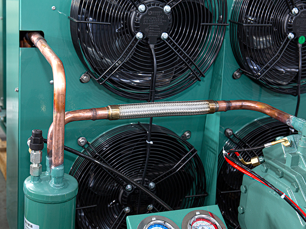 La unidad condensadora de paquete abierto de 15 HP presenta un diseño de estructura abierta y es adecuada para sistemas de refrigeración comerciales o industriales de tamaño pequeño a mediano. Equipado con un compresor completamente cerrado, proporciona potencia de circulación de refrigerante estable y admite refrigerantes comunes como R404A, R407C y R22. El condensador enfriado por aire utiliza una estructura de intercambio de calor de tubo de cobre y aleta de aluminio, lo que proporciona una fuerte disipación del calor. La unidad se puede configurar con componentes protectores y auxiliares como un controlador de presión, una mirilla líquida y un filtro secador para satisfacer necesidades específicas. El sistema eléctrico cumple con estándares de seguridad universales y admite suministro de energía trifásica. La estructura general es fácil de instalar y mantener, lo que la hace flexible para su uso en equipos terminales de refrigeración, como cámaras frigoríficas y vitrinas refrigeradas.
