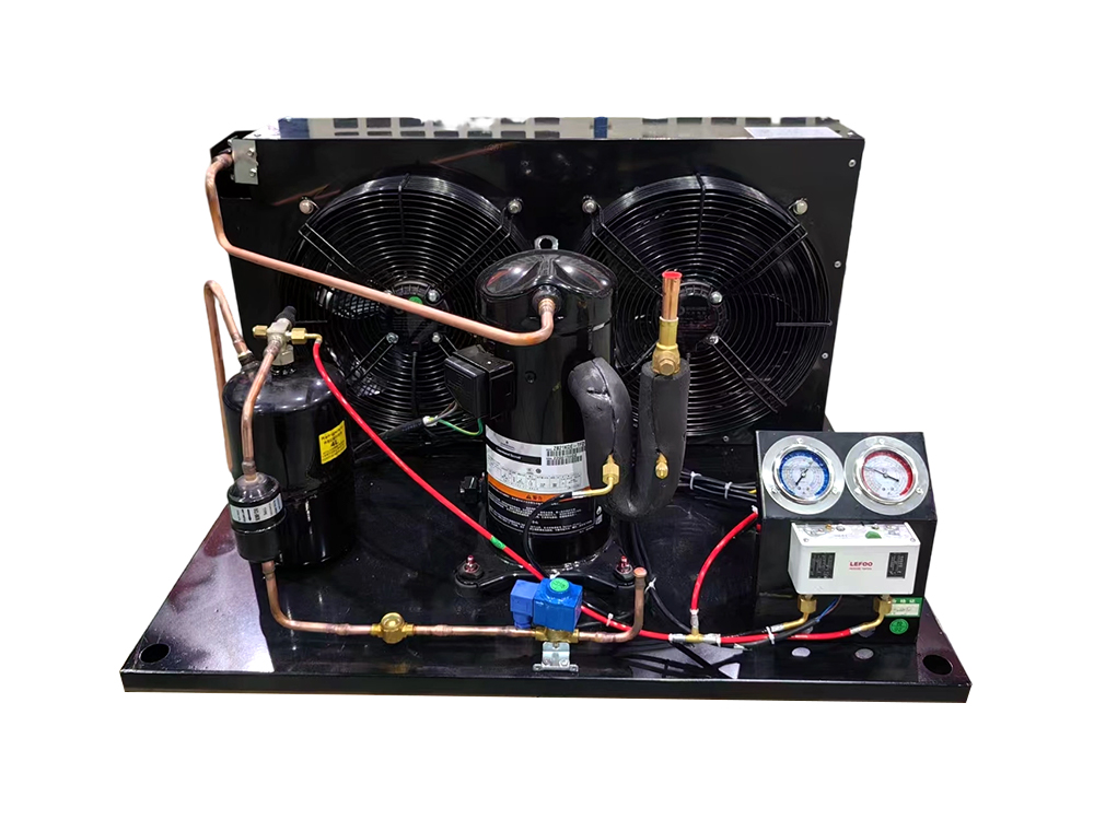 Sus componentes principales incluyen un compresor, un condensador enfriado por aire, un motor, un receptor de líquido y elementos de control de presión. Es adecuado para entornos de refrigeración de temperatura media y baja, como almacenamiento en frío, procesamiento de alimentos y logística de cadena de frío, donde se requiere un soporte de condensación estable. La unidad normalmente utiliza refrigerantes comunes como R404A o R22, admite estándares de suministro de energía de 50 Hz/60 Hz y puede funcionar continuamente dentro del rango de temperatura ambiente.