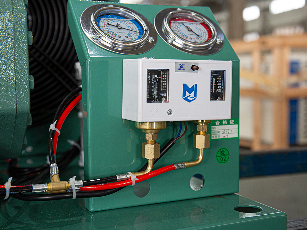 Sus componentes principales incluyen un compresor de pistón o espiral de 7 caballos de fuerza, que proporciona una capacidad estable de compresión de refrigerante. La unidad admite una variedad de refrigerantes comunes, como R22, R404 y R507, lo que ofrece amplia compatibilidad y aplicabilidad. El condensador utiliza un tubo de cobre y una estructura de aletas de aluminio, utilizando un proceso de expansión mecánica para garantizar una transferencia de calor eficiente, manteniendo un funcionamiento estable del sistema incluso en temperaturas ambiente altas.