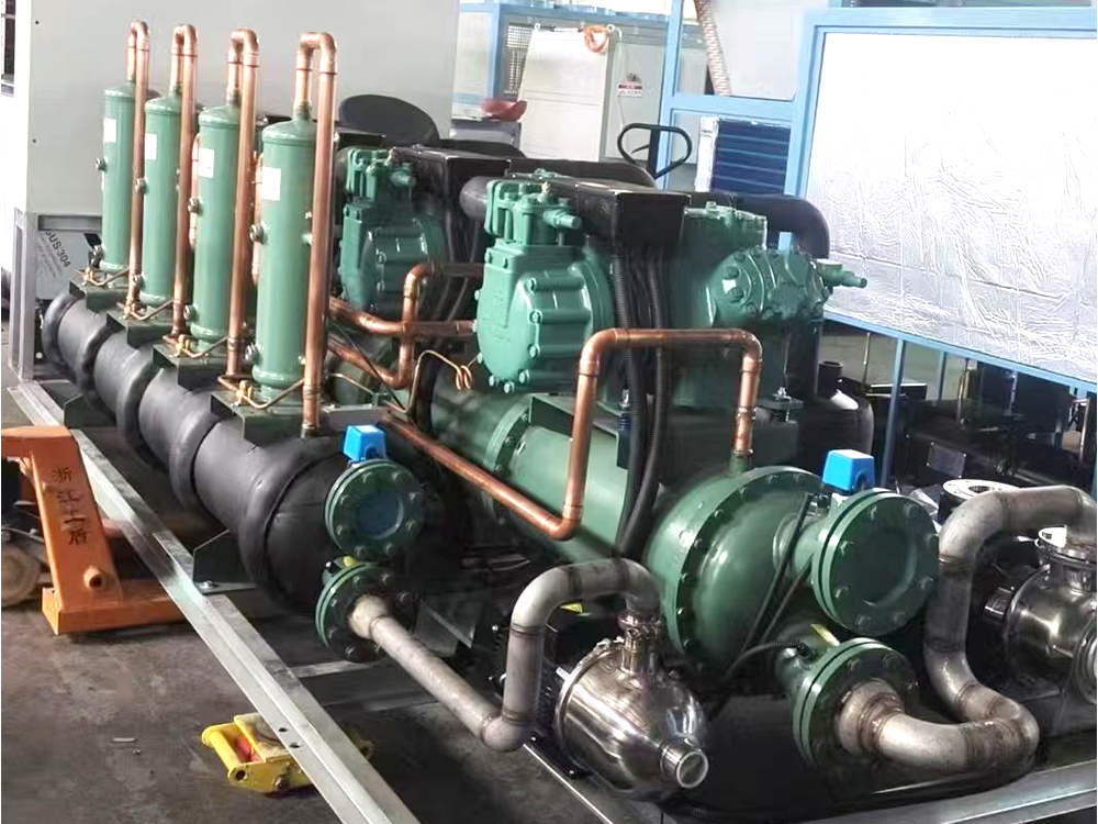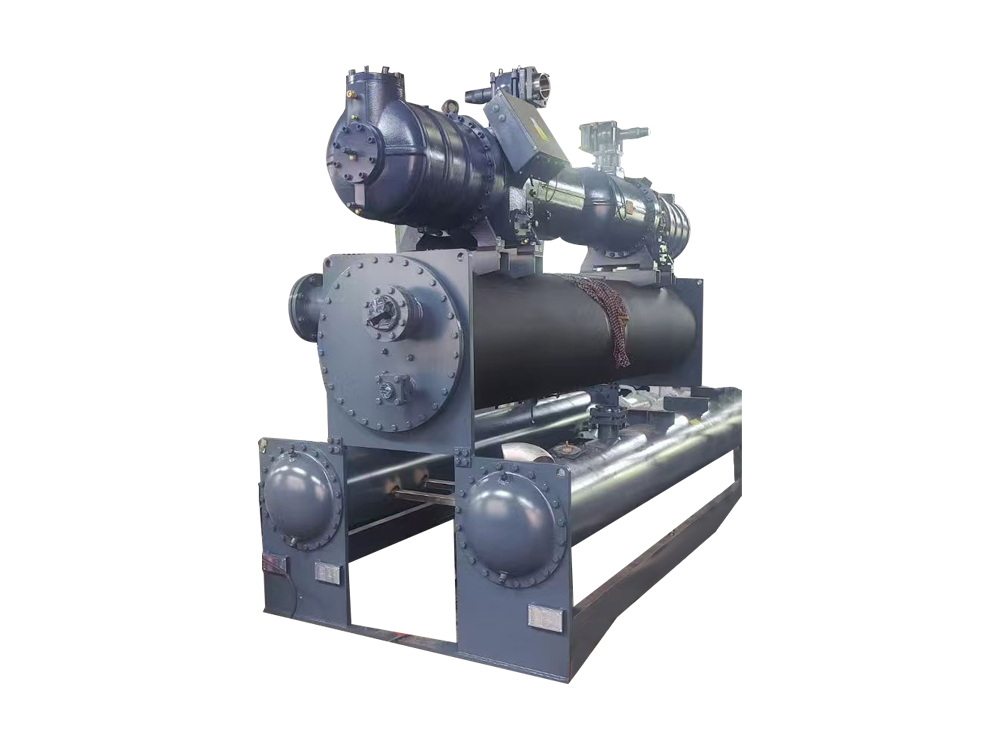 Durante el funcionamiento, el evaporador absorbe calor del agua fría, bajando su temperatura antes de suministrarla al equipo final. El refrigerante portador de calor es comprimido por el compresor y luego ingresa al condensador, donde se libera al aire ambiente a través del agua de enfriamiento. El agua de refrigeración normalmente se enfría y se recicla a través de una torre de refrigeración, mejorando así la eficiencia energética del sistema.